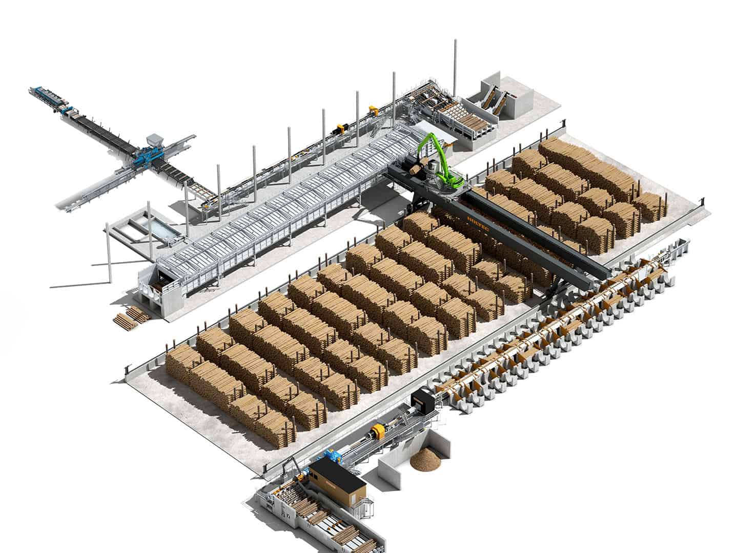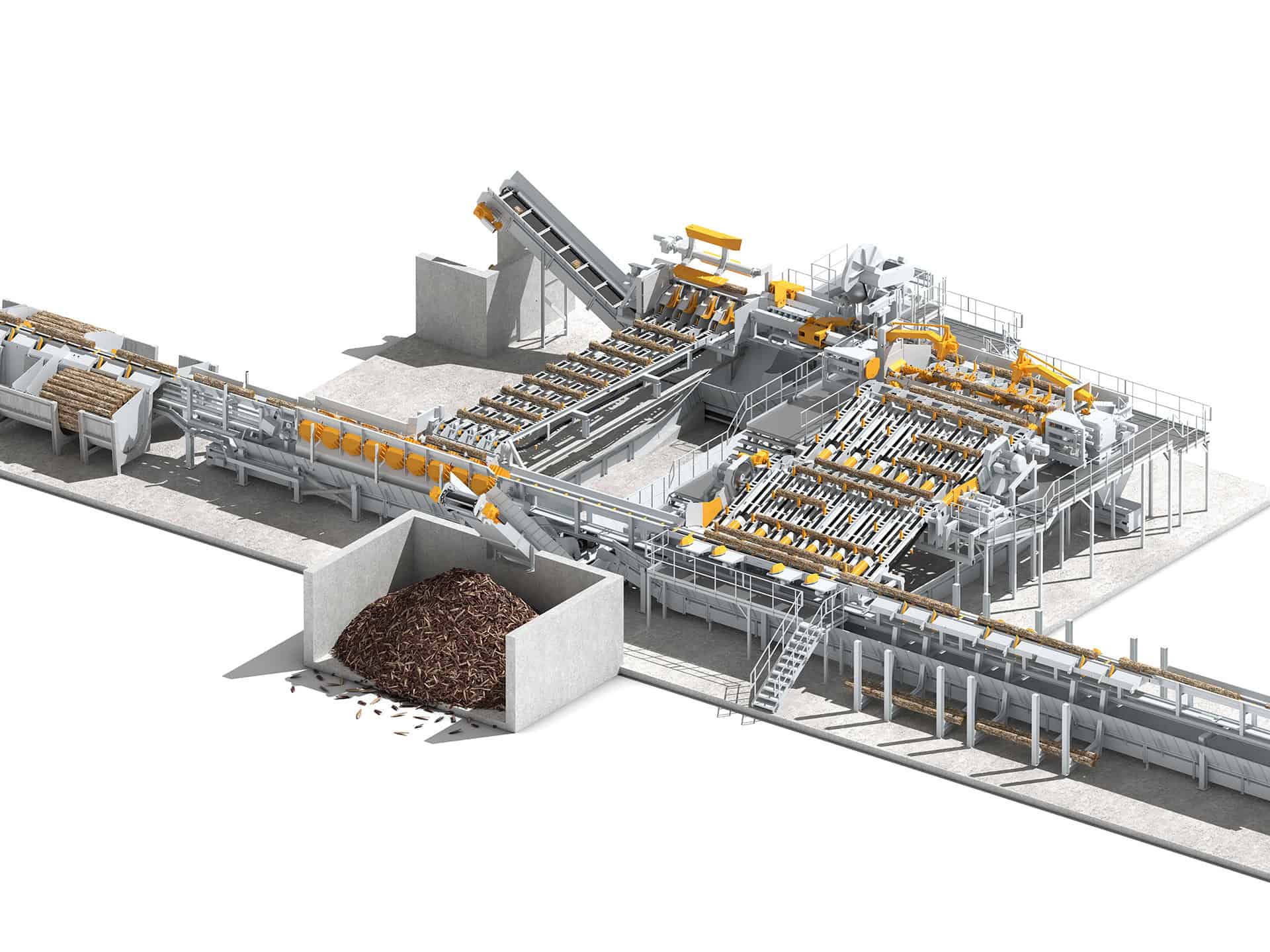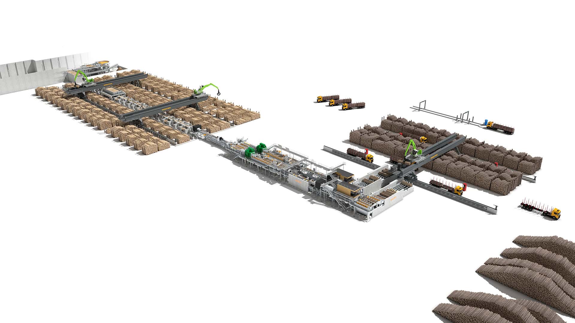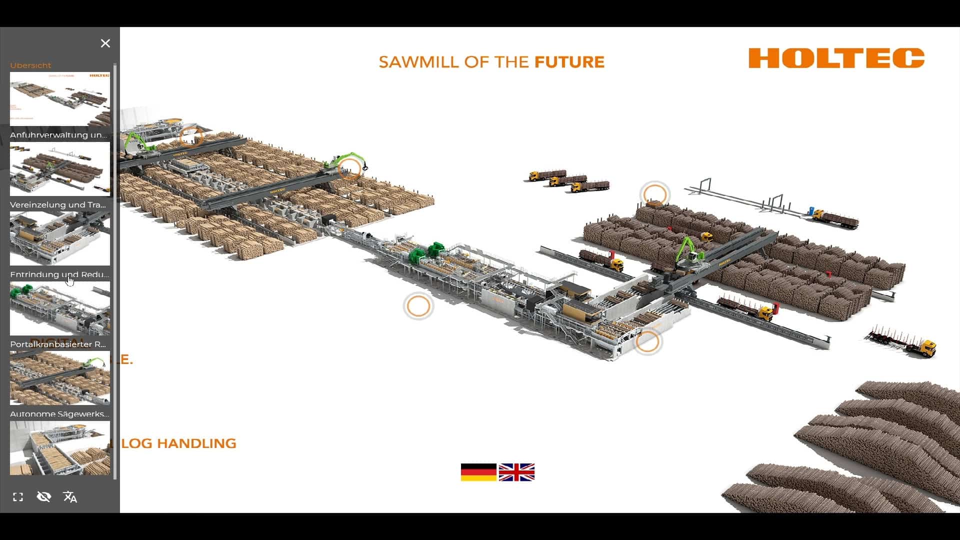 Produktanimation einer Paketkappsäge Holtec Holzverarbeitung